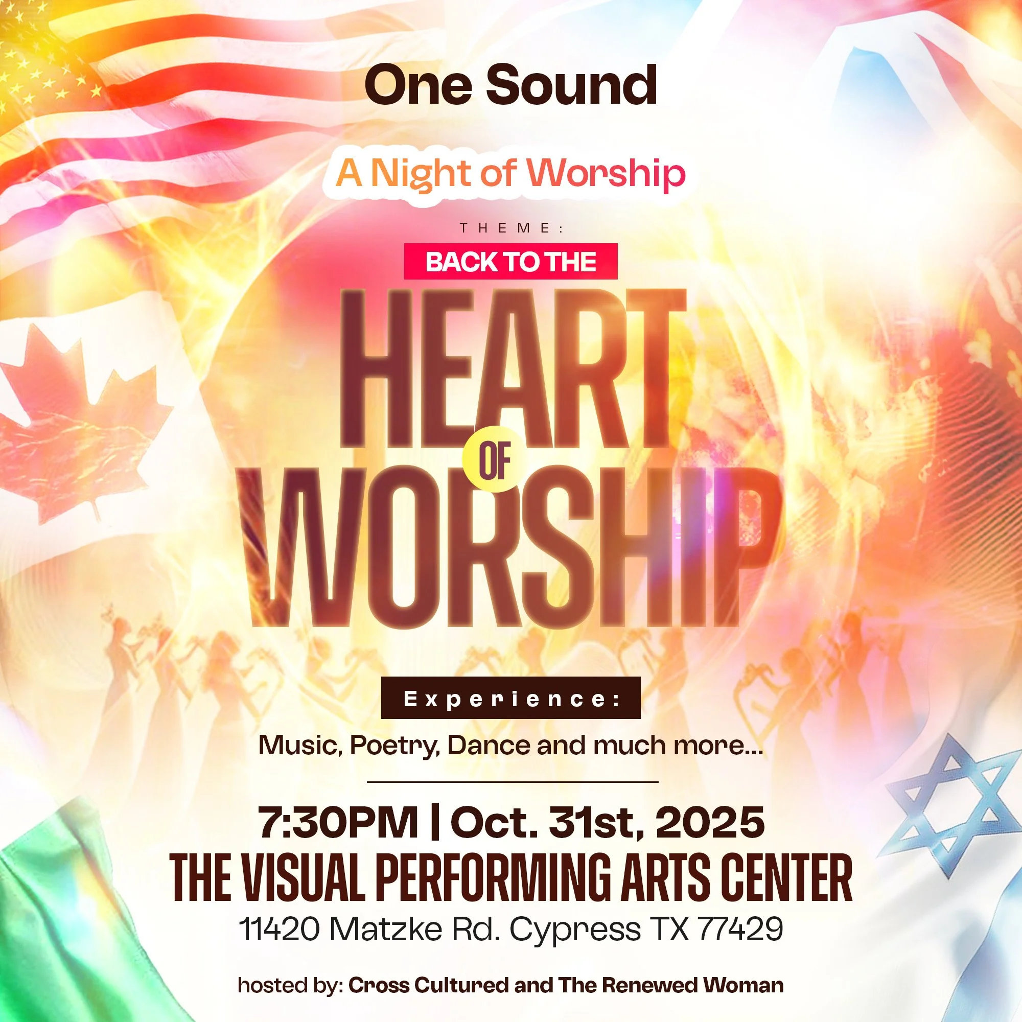 Join us for One Sound: Back to the Heart of Worship—an unforgettable night of unity, praise, and restoration. This powerful worship experience calls us to lay aside distractions and return to the essence of true worship: a heart fully surrendered to God. Through passionate music, heartfelt prayer, and Spirit-led moments, One Sound invites believers from every background to lift one voice in awe of the One who is worthy. Come encounter God’s presence, rekindle your devotion, and be reminded that worship is not just a sound—it’s a lifestyle. Let’s go back to the heart of worship, together.